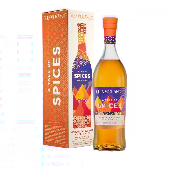 A Tale of Spices is a limited-edition single malt from Glenmorangie, inspired by the rich colours and aromas of bustling spice markets. Crafted under the vision of Dr Bill Lumsden, it is matured in a unique combination of Moroccan red wine casks, new charred oak, Pedro Ximénez sherry, and shaved toasted red wine casks, delivering layers of depth rarely seen in whisky. Bottled at 46% ABV and non-chill filtered, it is a bold, sensorial journey that showcases Glenmorangie’s flair for innovation.